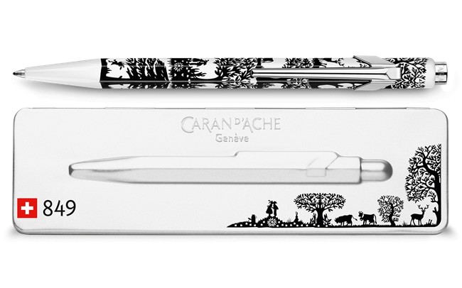 Tribute to the traditional art of papercutting. Immerse yourself in the Swiss culture with the 849 Papercut ballpoint pen and its decoration inspired by alpine scenery. This model comes in its matching ultra-thin packaging. Optimal comfort when held in the hand. This pen delivers up to 600 A4 pages, thanks to its acclaimed Goliath ink cartridge.