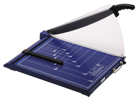 OPUS Eurocut is equipped with a plastic blade guard and a format gauge.